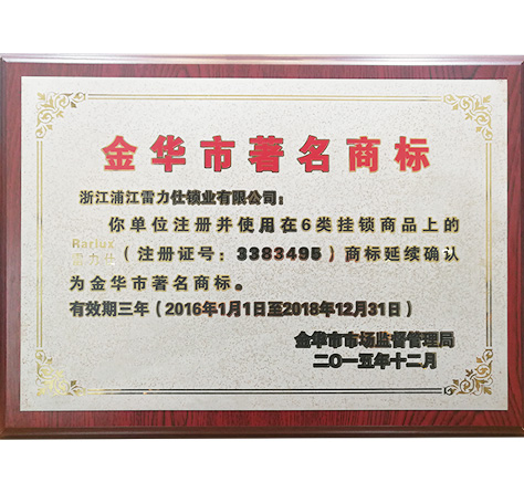 浦江雷力仕鎖業有限公司始建于1995年,是一家專業的鎖具生產商,位于全國最大的掛鎖制造中心-浦江。 公司具有強大的鎖具設計、研發、改良和制造能力,并擁有先進的設備和雄厚的技術力量、以及一支訓練有素的專業團隊。 公司專業生產50多種系列的100余種中高檔銅、鐵掛鎖, SUS304 不銹鋼掛鎖,于2015年通過了ISO9001:2015質量管理體系認證。現有注冊和授權商標:RARLUX、JEWEL-FLOWER、TRI-CYCLE。產品暢銷非洲、中東、歐洲、墨西哥、南美等地區。依靠值得信賴的品質和完善的服務,深受海內外客戶的青睞。 “造就最卓越的品質、提供最優質的服務”是標準、是承諾、更是我們銳意進取的動力。